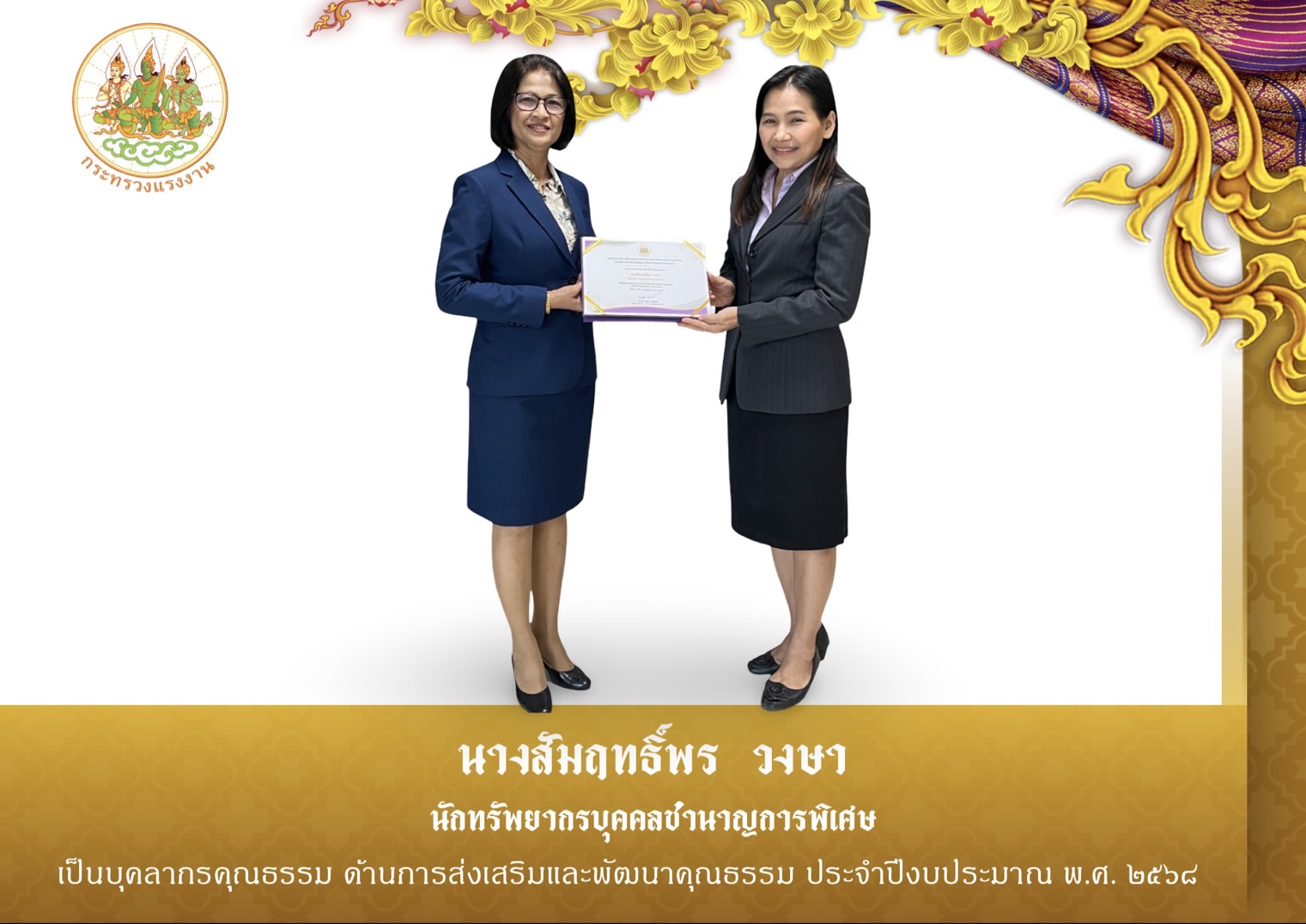 1) บุคคลที่ได้รับการยกย่อง เชิดชู คือ นางสัมฤทธิ์พร วงษา นักทรัพยากรบุคคลชำนาญการพิเศษ