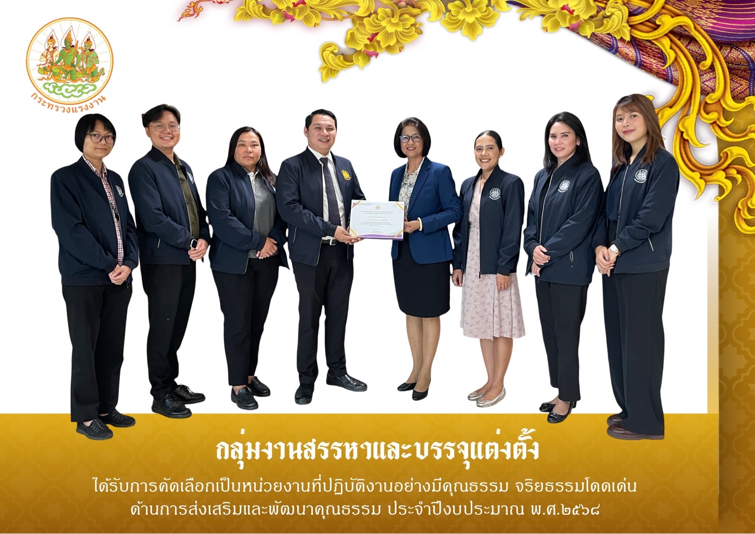 2) หน่วยงานที่ได้รับการยกย่อง เชิดชู คือ กลุ่มงานสรรหาและบรรจุแต่งตั้ง