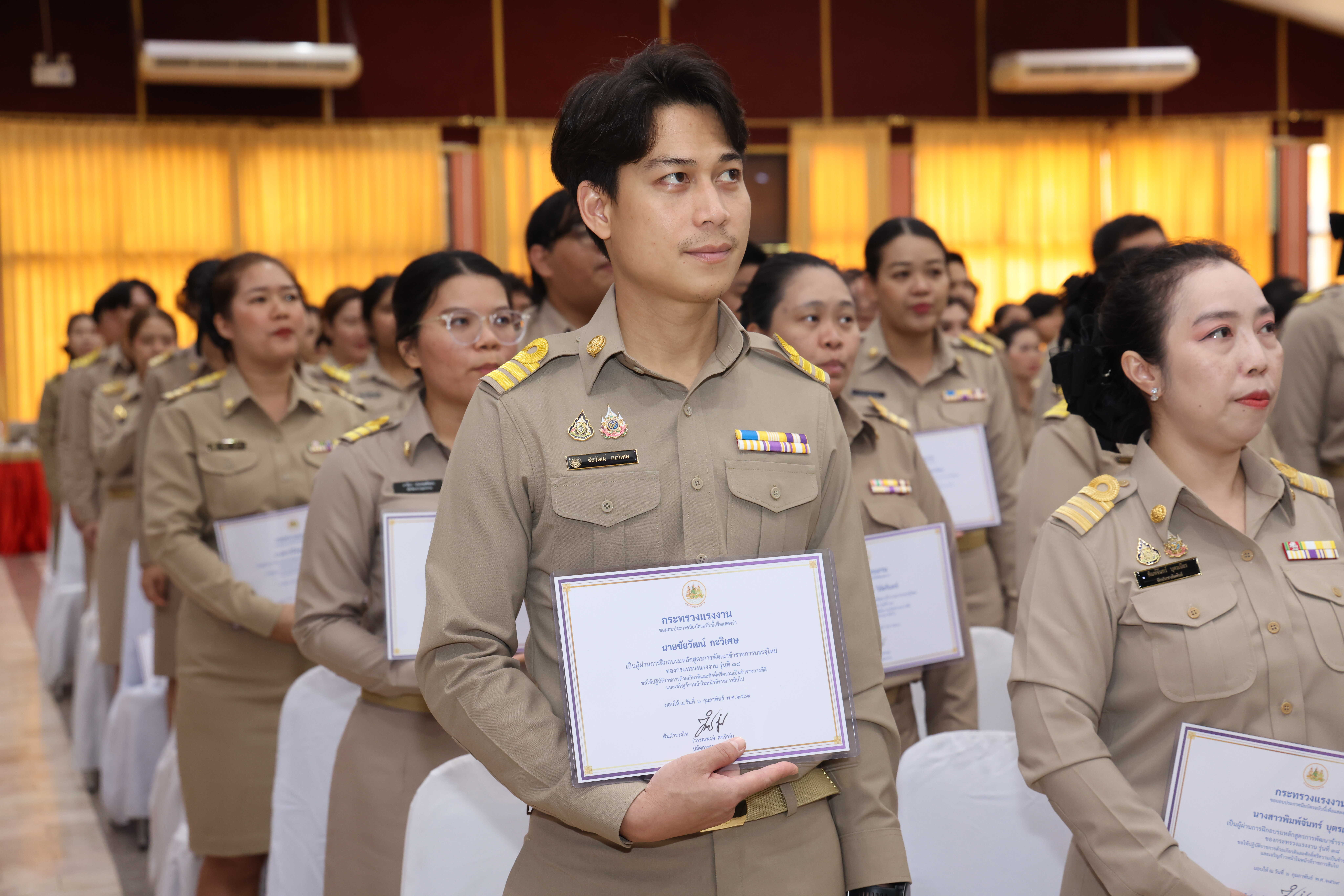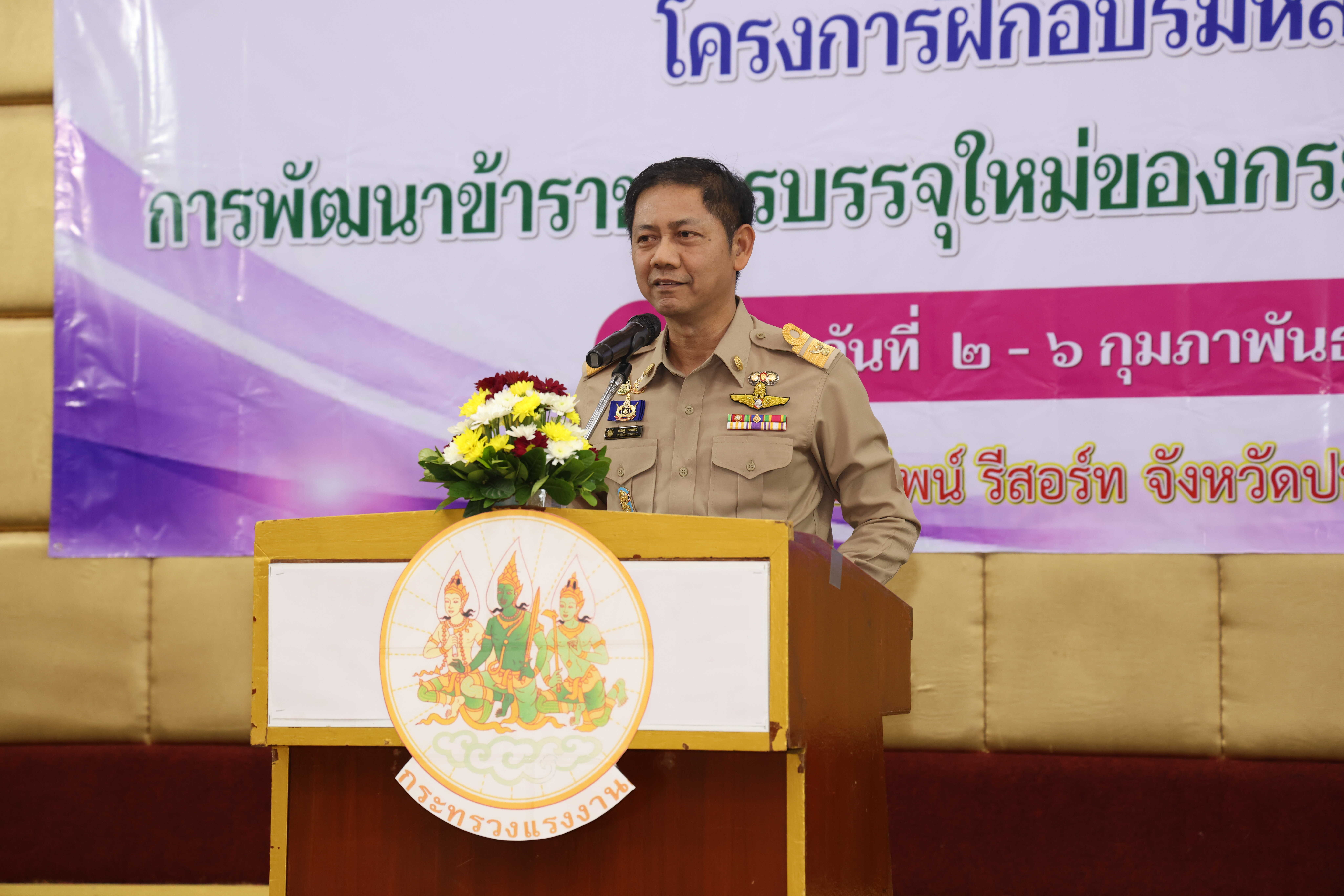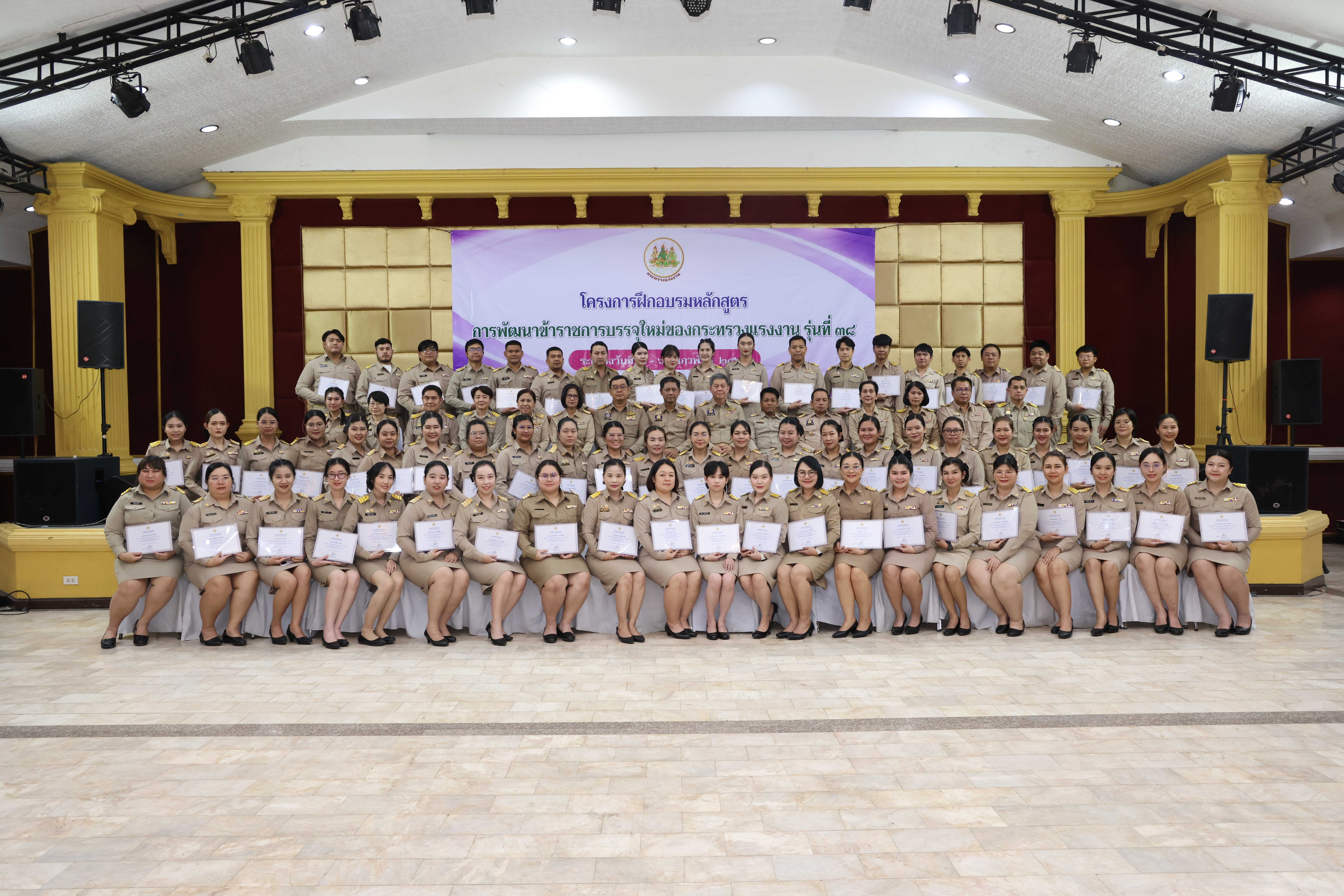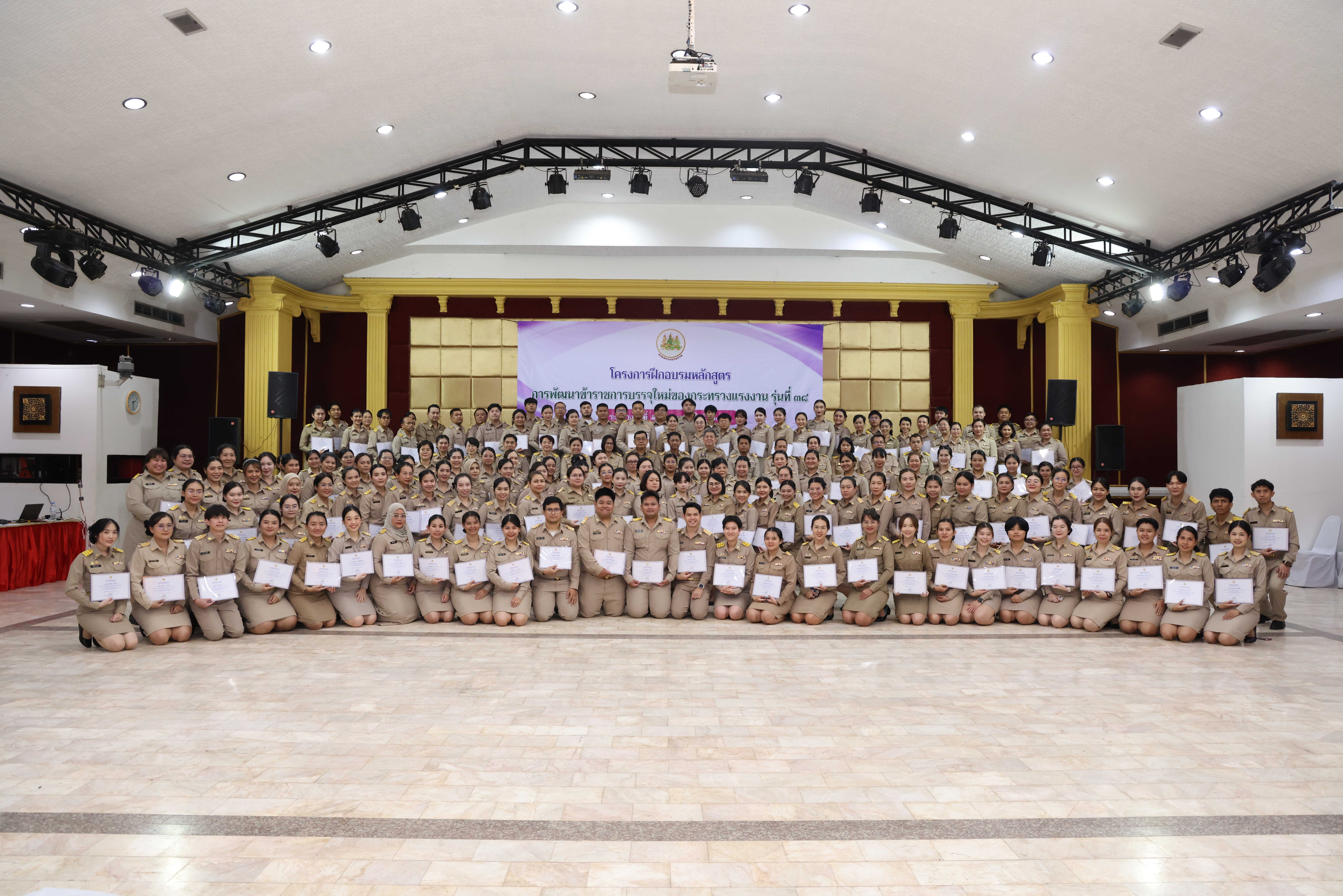วันที่ 6 กุมภาพันธ์ 2569 เวลา 14.00 น. พันตำรวจโท วรรณพงษ์ คชรักษ์ ปลัดกระทรวงแรงงาน มอบหมายให้ นายพิเชษฐ์ ทองพันธ์ รองปลัดกระทรวงแรงงาน เป็นประธานพิธีปิดโครงการฝึกอบรมหลักสูตรการพัฒนาข้าราชการบรรจุใหม่ของกระทรวงแรงงาน รุ่นที่ 38 พร้อมมอบประกาศนียบัตรให้แก่ผู้ผ่านการฝึกอบรม โดยมี นายศักดินาถ สนธิศักดิ์โยธิน ผู้ช่วยปลัดกระทรวงแรงงาน และผู้บริหารระดับสูงหน่วยงานในสังกัดกระทรวงแรงงาน เข้าร่วมด้วย ณ ห้องประชุม To be number one โรงแรมเดอะไพน์ รีสอร์ท อำเภอสามโคก จังหวัดปทุมธานี