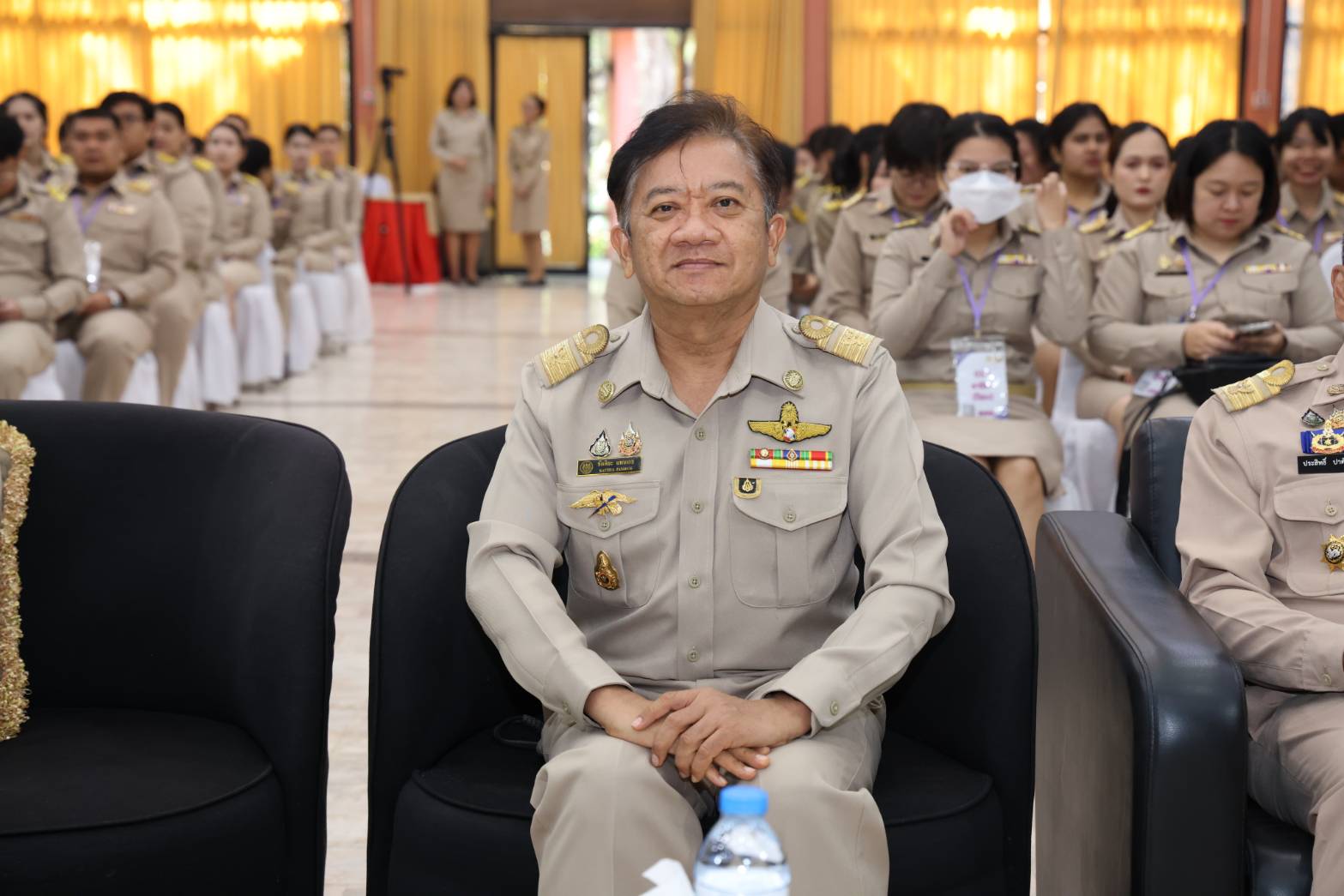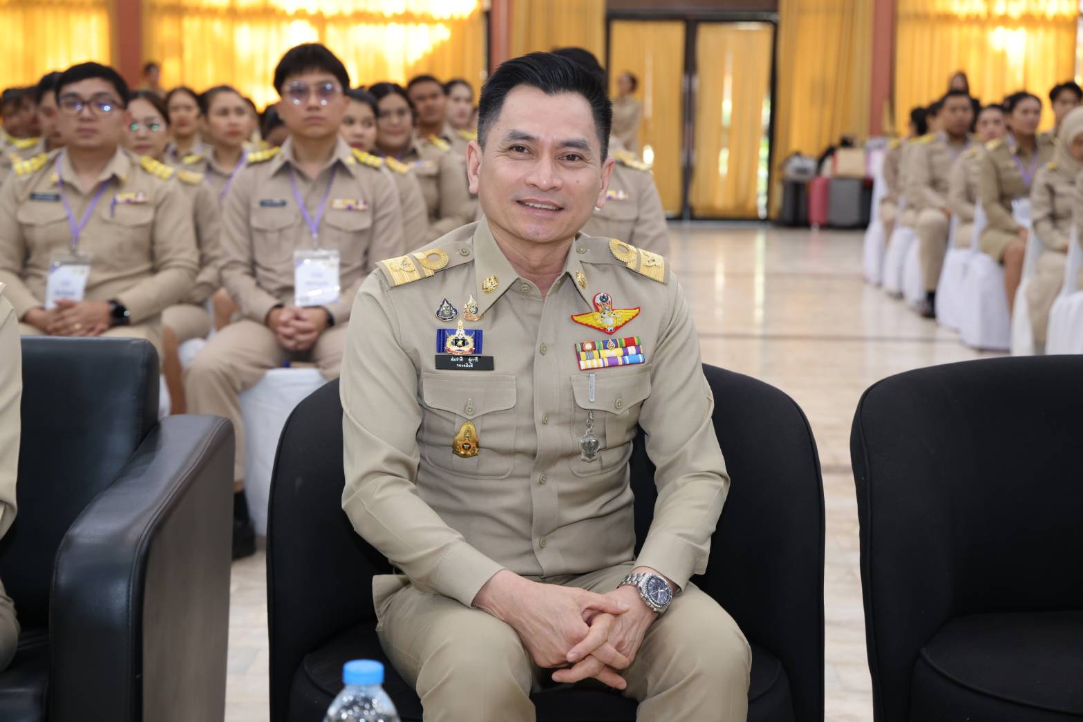 นายพิเชษฐ์ กล่าวต่อว่า โครงการฝึกอบรมหลักสูตรการพัฒนาข้าราชการบรรจุใหม่ของกระทรวงแรงงาน รุ่นที่ 38ในวันนี้ ซึ่งถือเป็นโครงการสำคัญในการพัฒนาและเตรียมความพร้อมให้กับข้าราชการบรรจุใหม่ทุกท่าน เพื่อให้สามารถปฏิบัติงานได้อย่างมีประสิทธิภาพ และเติบโตเป็นกำลังสำคัญของกระทรวงแรงงานในอนาคต ในยุคที่โลกเปลี่ยนแปลงอย่างรวดเร็ว โดยเฉพาะด้านเทคโนโลยีดิจิทัลและนวัตกรรม ข้าราชการยุคใหม่จำเป็นต้อง เรียนรู้ พัฒนา และรู้เท่าทันการเปลี่ยนแปลงใหม่ๆ อยู่เสมอ เพื่อให้การทำงานของเราทันต่อสถานการณ์ และตอบสนองต่อความต้องการของประชาชนได้อย่างมีประสิทธิภาพมากที่สุด