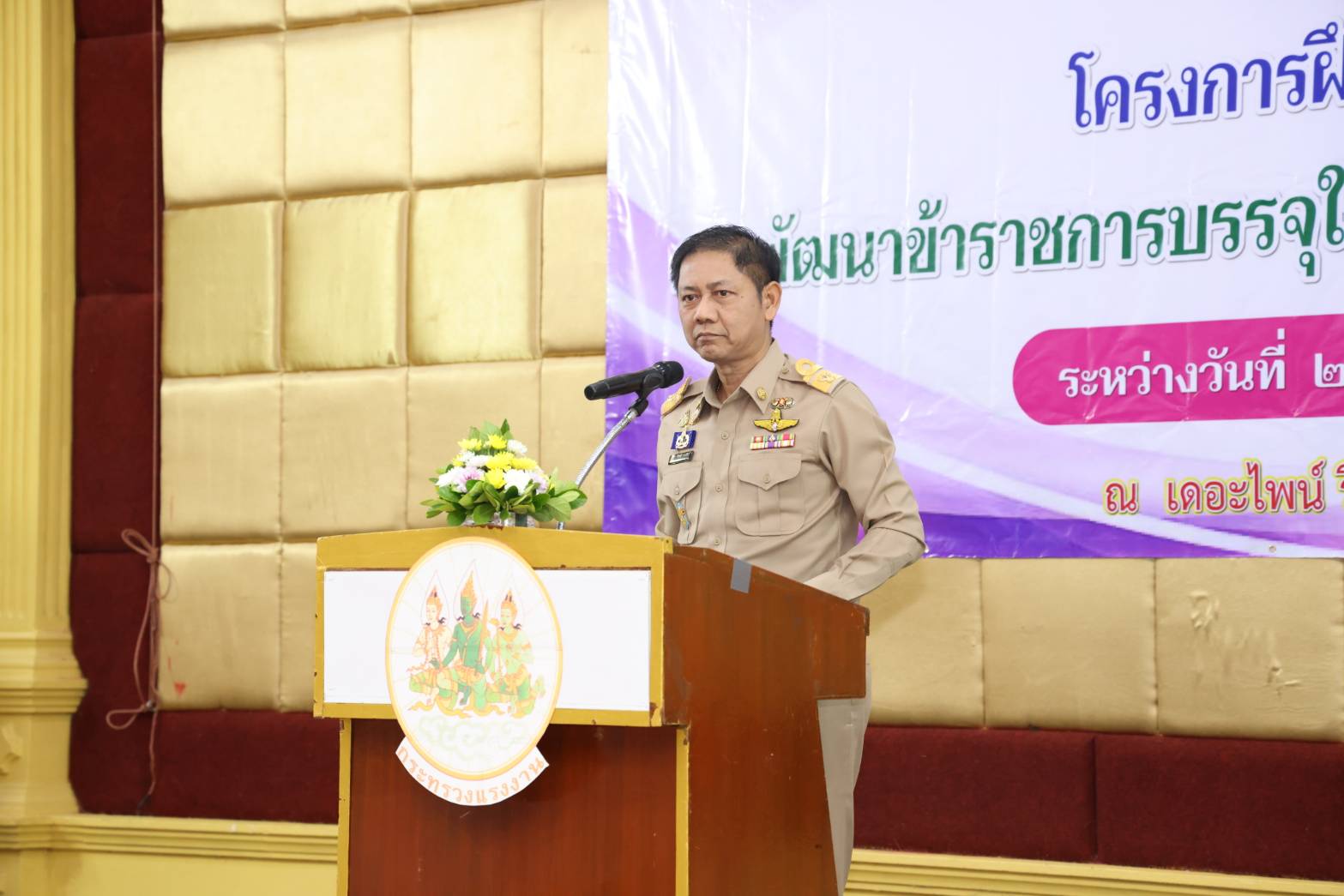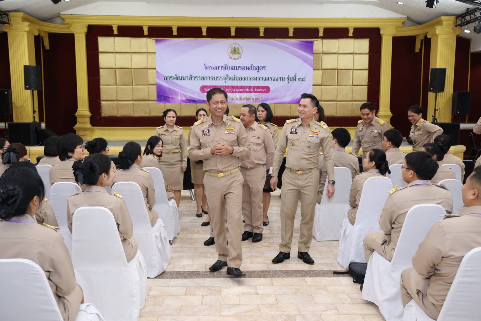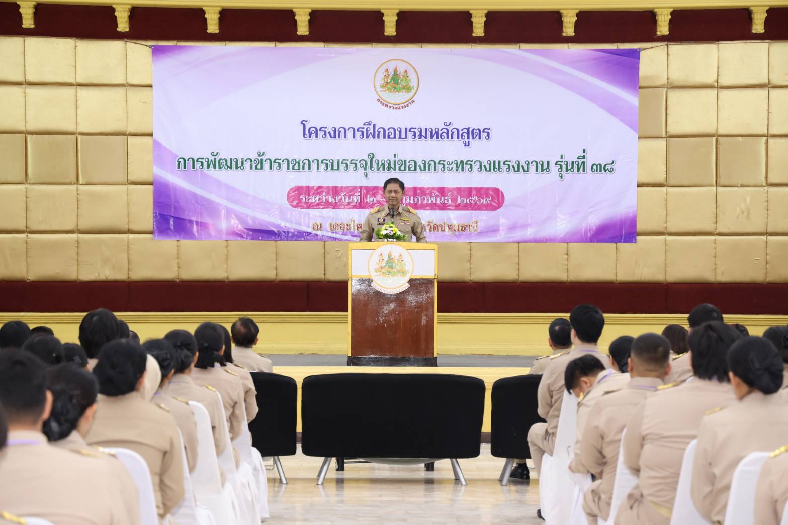 วันที่ 2 กุมภาพันธ์ 2569 เวลา 10.30 น. พันตำรวจโท วรรณพงษ์ คชรักษ์ ปลัดกระทรวงแรงงาน มอบหมายให้ นายพิเชษฐ์ ทองพันธ์ รองปลัดกระทรวงแรงงาน เป็นประธานในพิธีเปิดโครงการฝึกอบรมหลักสูตรการพัฒนาข้าราชการบรรจุใหม่ของกระทรวงแรงงาน รุ่นที่ 38 โดยมี นายสมชาติ สุภารี รองอธิบดีกรมพัฒนาฝีมือแรงงาน ผู้บริหารกระทรวงแรงงาน ร่วมเป็นเกียรติ นางสาวศิริลักษณ์ ประศาสตร์อินทาระ ผู้อำนวยการกองบริหารทรัพยากรบุคคล กล่าวรายงาน ณ โรงแรมเดอะไพน์ รีสอร์ท อำเภอสามโคก จังหวัดปทุมธานี