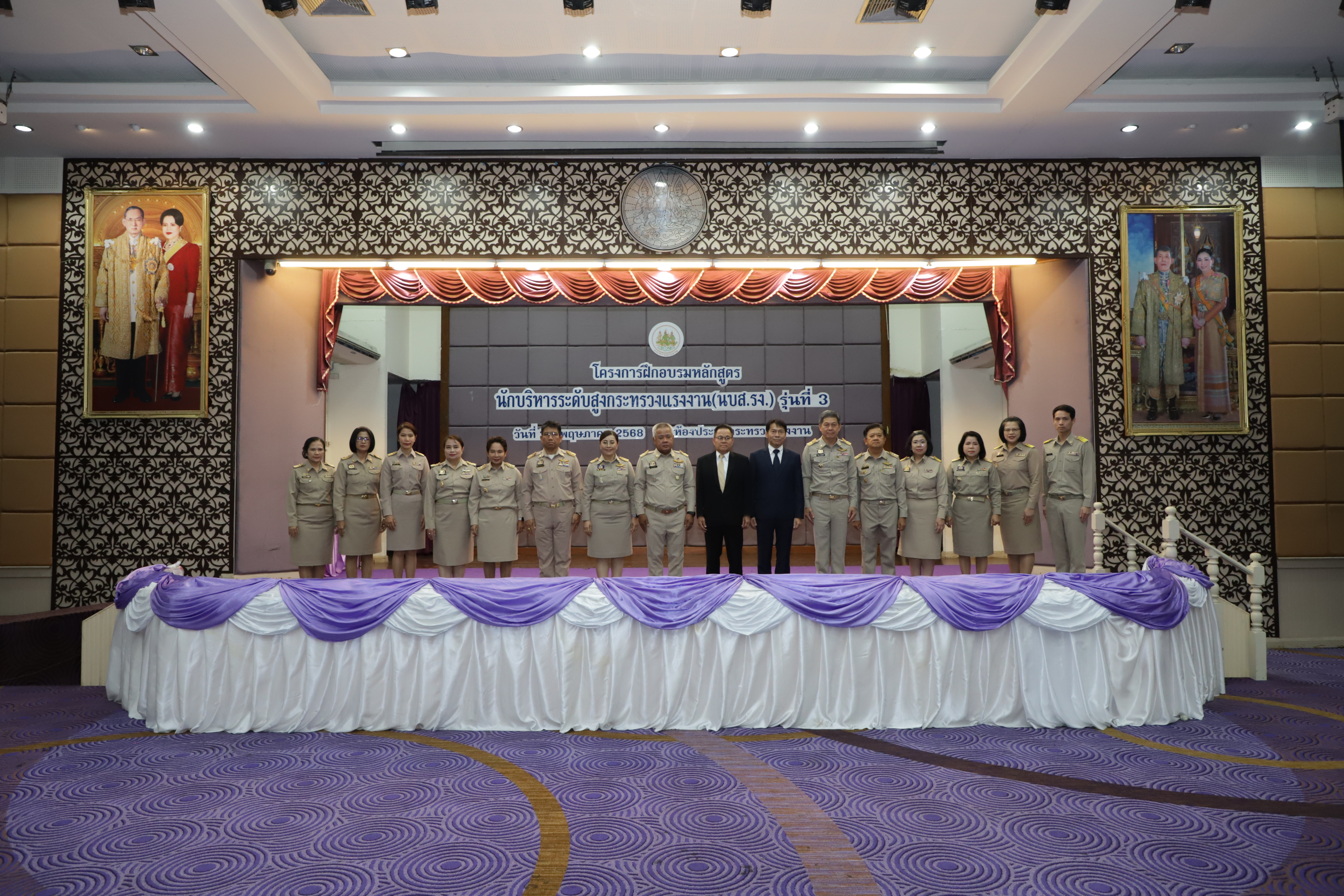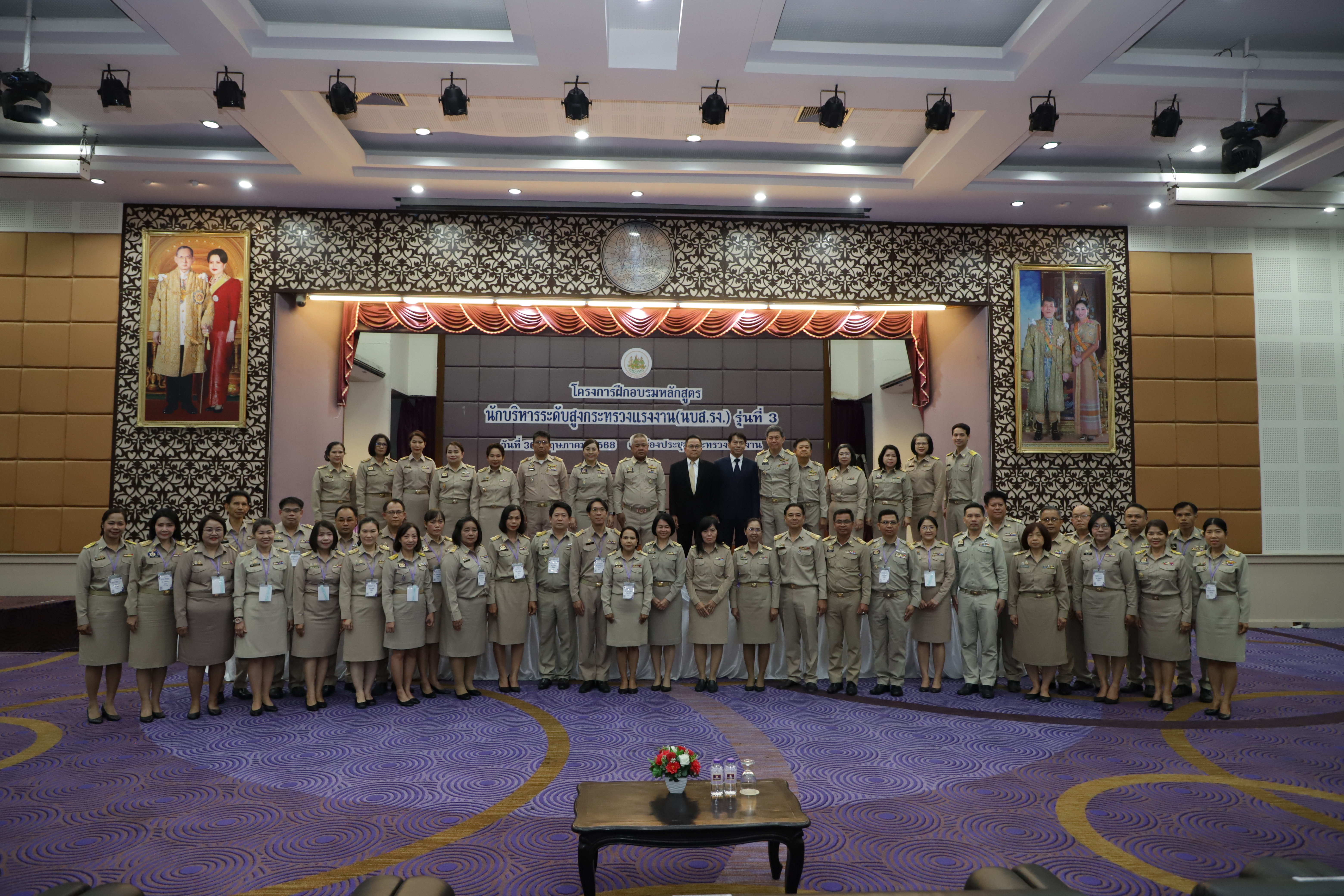 นายบุญสงค์ ทัพชัยยุทธ์ ปลัดกระทรวงแรงงาน กล่าวว่า การฝึกอบรมหลักสูตรนักบริหารระดับสูงกระทรวงแรงงาน (นบส.รง.) ได้ดำเนินการมาเป็นรุ่นที่ 3 โดยเป็นหลักสูตรที่ได้รับความเห็นชอบจากสำนักงาน ก.พ. มีวัตถุประสงค์เพื่อเสริมสร้างศักยภาพให้แก่ผู้ดำรงตำแหน่งประเภทอำนวยการ เพื่อเตรียมความพร้อมในการก้าวสู่ตำแหน่งประเภทบริหารระดับต้น และสร้างเครือข่ายบูรณาการการทำงานร่วมกัน โดยมีผู้เข้าร่วมฝึกอบรมในครั้งนี้ รวมทั้งสิ้น 35 คน เป็นข้าราชการผู้ดำรงตำแหน่งประเภทอำนวยการ จากหน่วยงานในสังกัดกระทรวงแรงงาน จำนวน 30 คน และจากหน่วยงานภายนอก จำนวน 5 คน จากสำนักงบประมาณ กระทรวงการคลัง กระทรวงวัฒนธรรม กระทรวงเกษตรและสหกรณ์ และกรมประชาสัมพันธ์