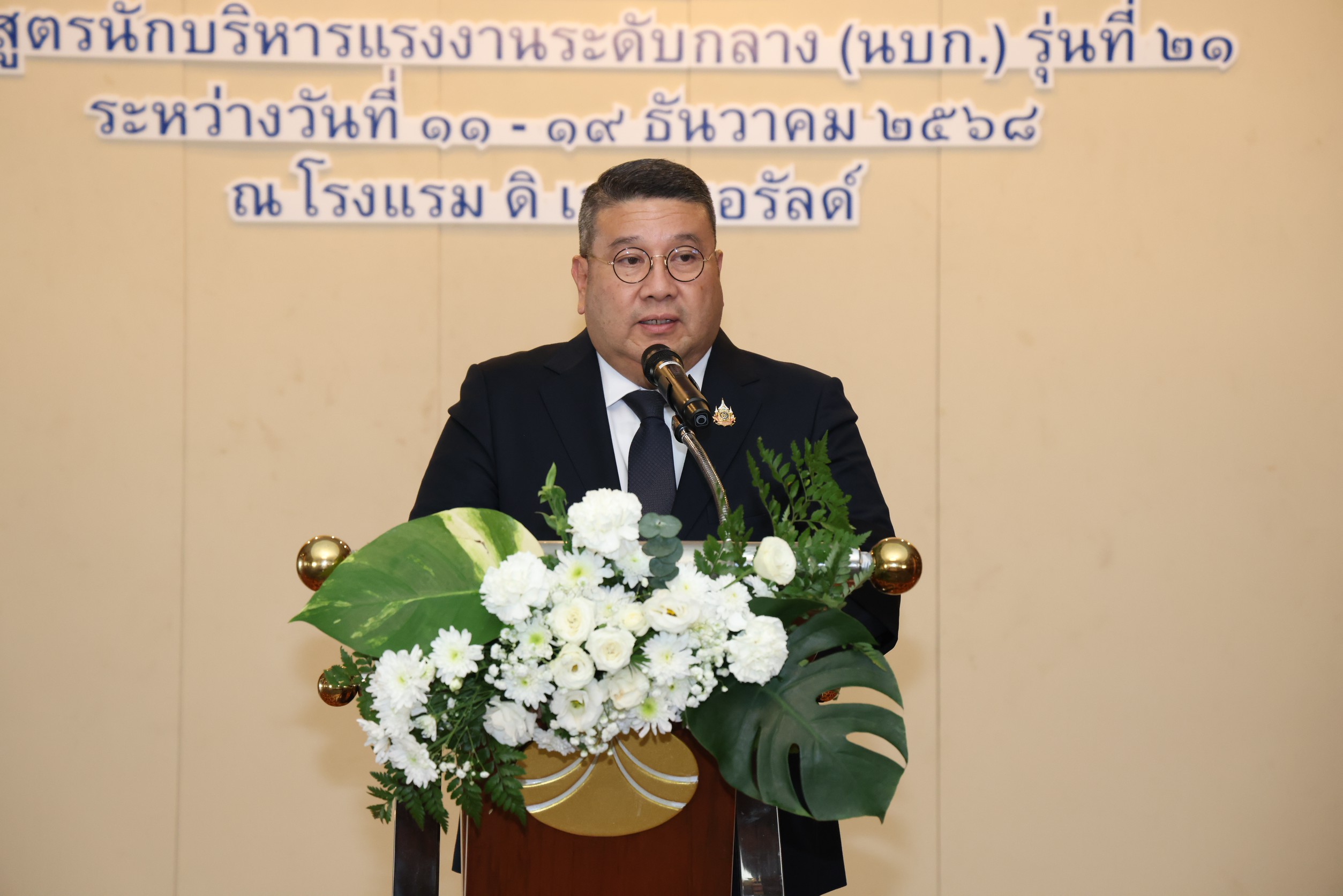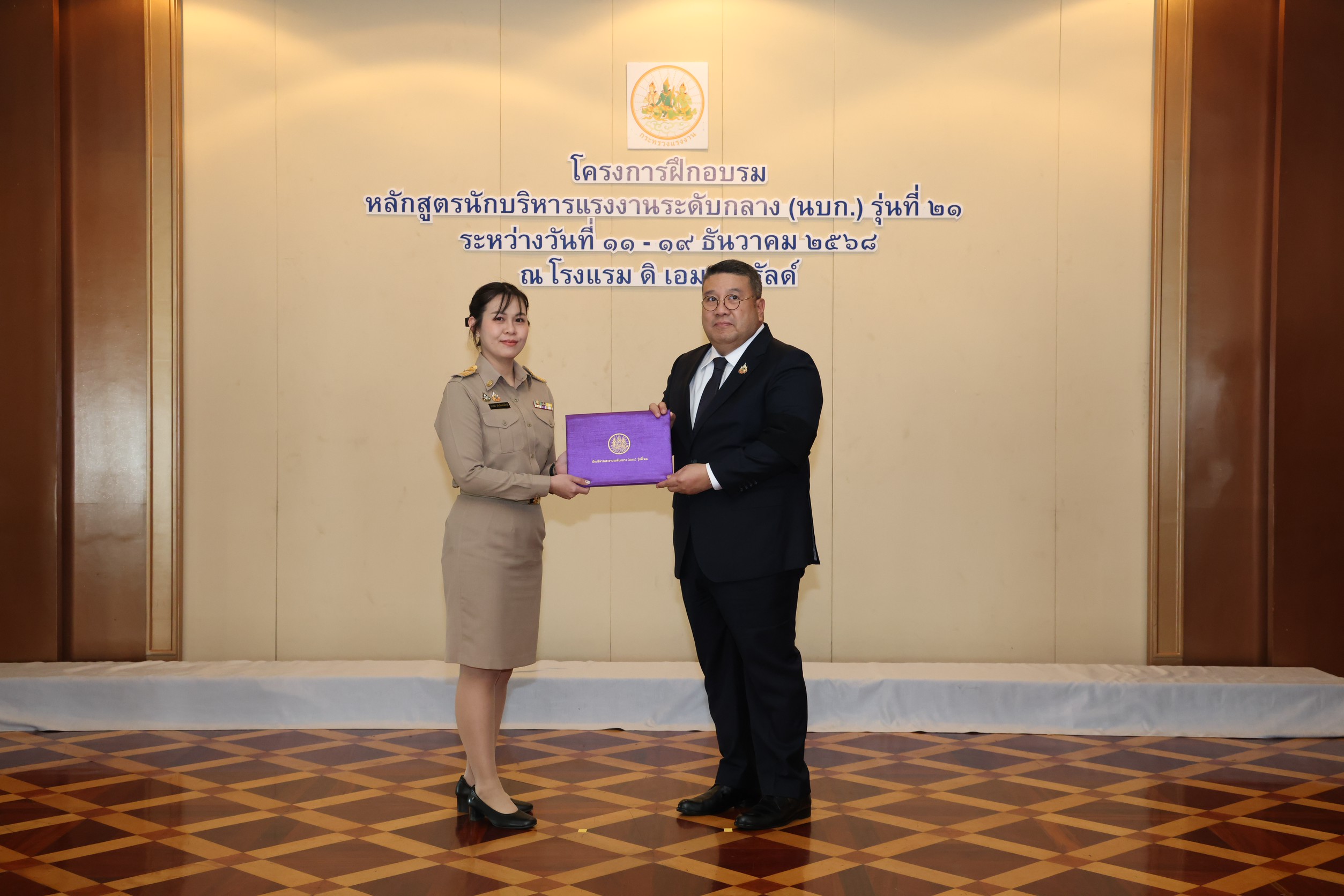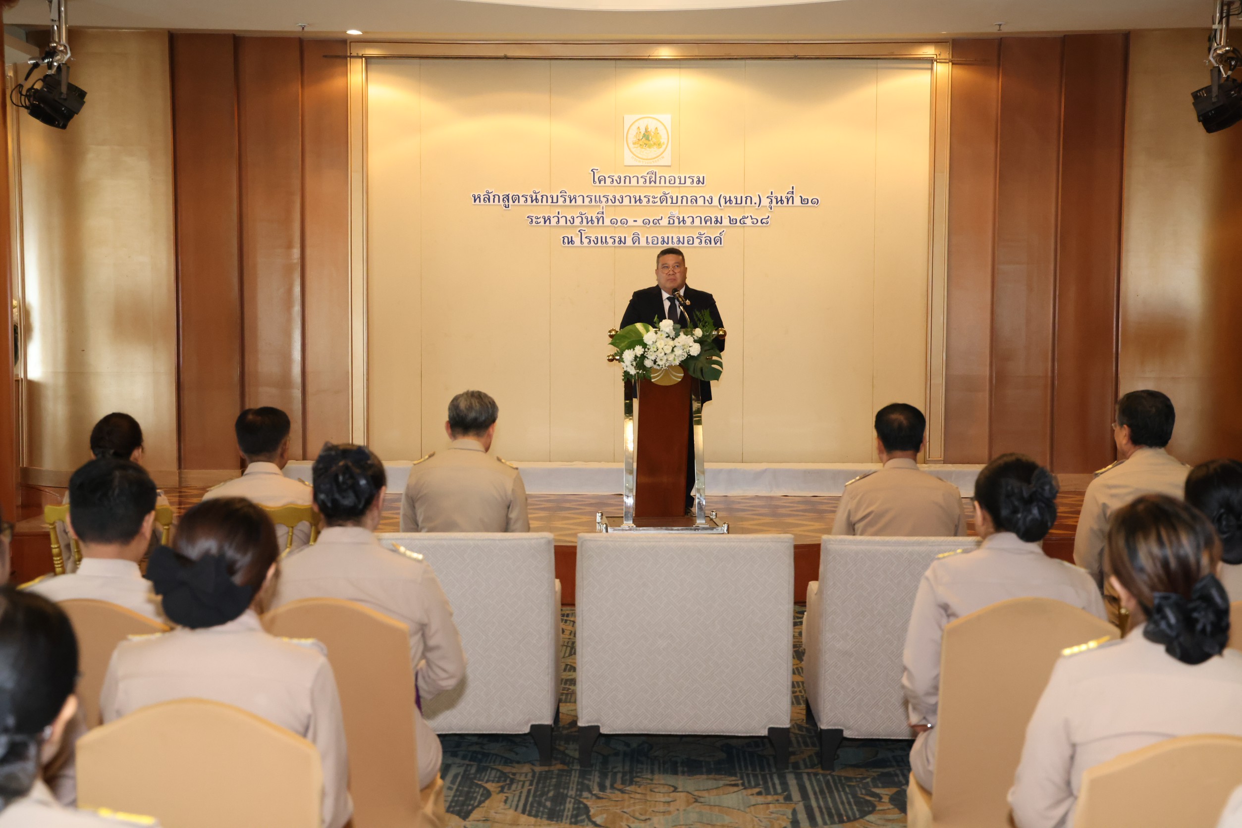 วันที่ 19 ธันวาคม 2568 เวลา 15.00 น. พันตำรวจโท วรรณพงษ์ คชรักษ์ ปลัดกระทรวงแรงงาน เป็นประธานมอบประกาศนียบัตรและปิดการฝึกอบรมหลักสูตรนักบริหารแรงงานระดับกลาง (นบก.) รุ่นที่ 21 โดยมี นายสิบหมื่นชัย โพธิสินธุ์ ผู้ตรวจราชการกระทรวงแรงงาน นายศักดินาถ สนธิศักดิ์โยธิน ผู้ช่วยปลัดกระทรวงแรงงาน และข้าราชการผู้ผ่านการฝึกอบรม เข้าร่วมด้วย ณ ห้องแกรนด์พาโนรามา ชั้น 14 โรงแรมดิ เอมเมอรัลด์ ถนนรัชดาภิเษก เขตดินแดง กรุงเทพมหานคร