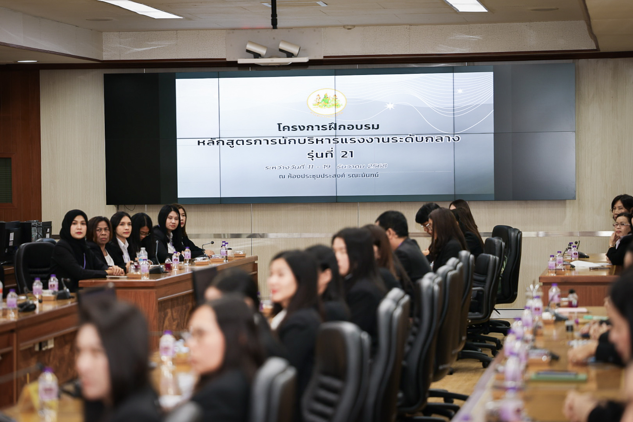 วันที่ 11 ธันวาคม 2568 เวลา 09.30 น. พันตำรวจโท วรรณพงษ์ คชรักษ์ ปลัดกระทรวงแรงงาน มอบหมายให้ นางสาวบุปผา เรืองสุด รองปลัดกระทรวงแรงงาน เป็นประธานพิธีเปิดโครงการฝึกอบรมหลักสูตรนักบริหารแรงงานระดับกลาง (นบก.) รุ่นที่ 21 โดยมี นายเกริกไกร นาสมยนต์ ที่ปรึกษากฎหมาย เข้าร่วมเป็นเกียรติด้วย ณ ห้องประชุมประสงค์ รณะนันทน์ ชั้น 5 อาคารกระทรวงแรงงาน